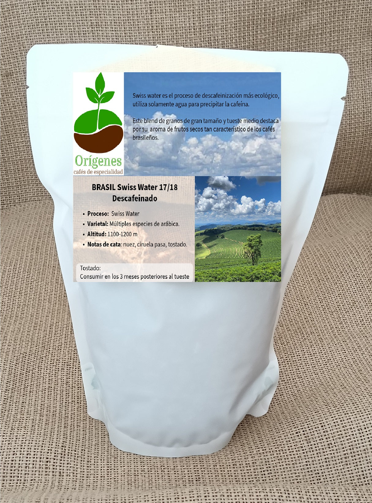 Swiss Water es el proceso de descafeinización más ecológico, utiliza solamente agua para precipitar la cafeína.